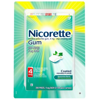 Nicorette Nicotine Gum Spearmint Flavor Coated 4mg Stop Smoking Aid 200 Ct Sam S Club